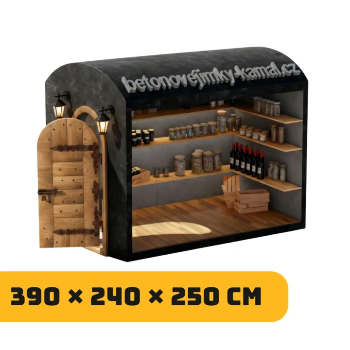 33 000,00 Kč Betonový sklep s plochou střechou a vstupem na delší straně - (390x240x235cm)