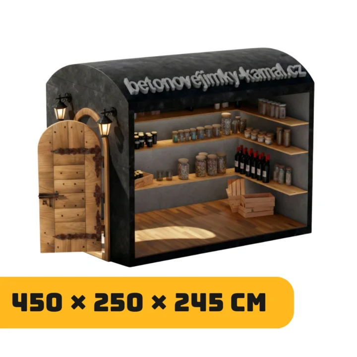 63 000,00 Kč Betonový sklep s plochou střechou a vstupem na delší straně – (300x240x212cm)