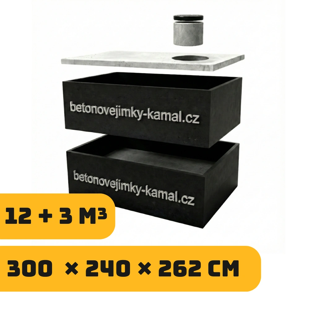 Jednokomorové jimka 15m³ – skládané na sebe 12m³ vysoká +3m³